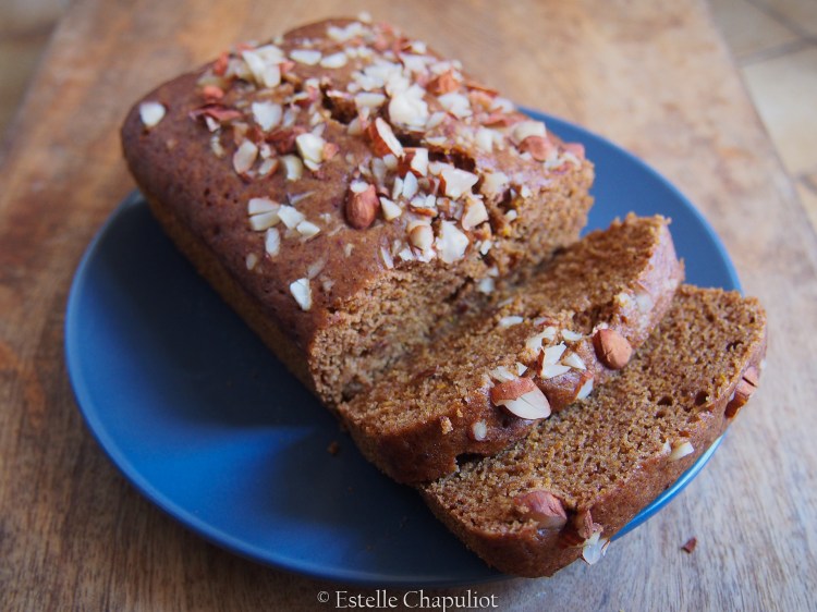(3) La mélasse de raisin est une sorte de sirop de fruit (jus du fruit concentré par évaporation). Suivant le type de fruit, la mélasse obtenue ressemble à un caramel liquide plus ou moins foncé. Dans cette recette, elle contribue fortement à la belle couleur marron-doré du gâteau. Il est possible de la remplacer par du sirop d’érable (qui est d’ailleurs de la sève d’érable concentrée par évaporation), ou par 60 g de sucre complet + 1 càs d’eau (le gâteau sera un peu moins foncé et légèrement moins moelleux).