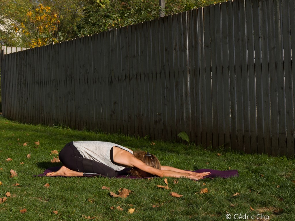 Où : De préférence sur une surface plane, un peu molle pour plus de confort (tapis de yoga, de salon, dans l’herbe l’été…).