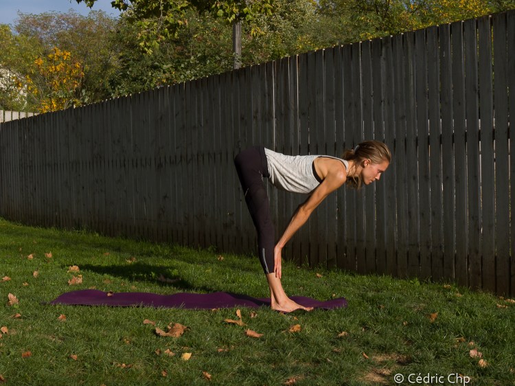 Descendre le buste vers l’avant, le dos droit [Expiration]