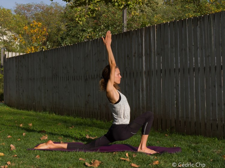 Une salutation complète = 1 fois jambe gauche vers l’arrière, 1 fois jambe droite vers l’arrière.